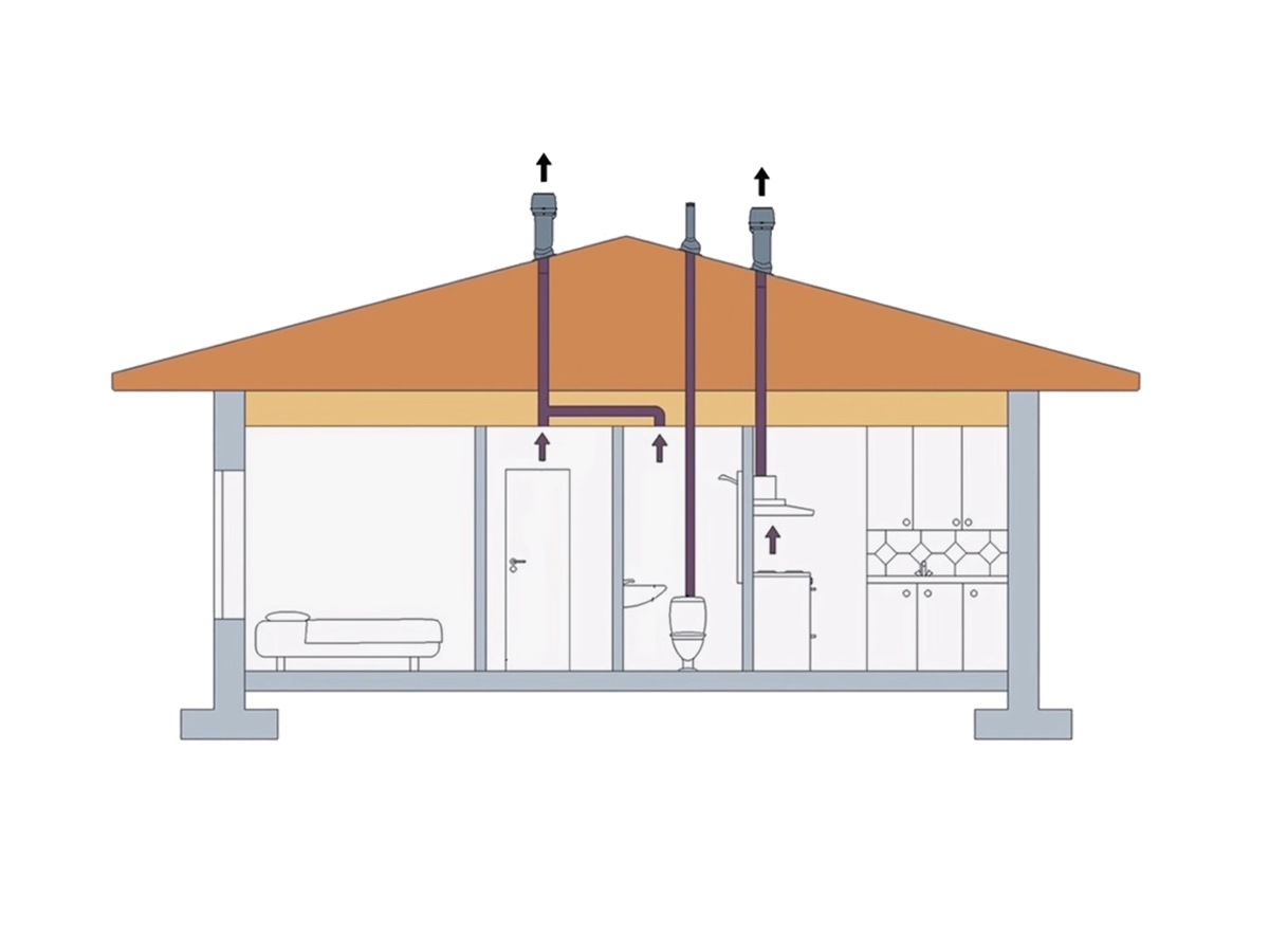 Здесь в работу включаются вентиляторы. Обычно их устанавливают в санузлах, ванных комнатах и на кухне — там, где образуется влага и запахи. Загрязнённый воздух удаляется принудительно, а приток организуется через специальные клапаны или окна.